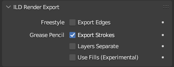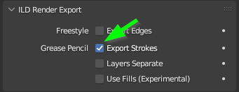 - to export Grease Pencil strokes to ILD Render enable it in Render Properties - ILD Render Export: